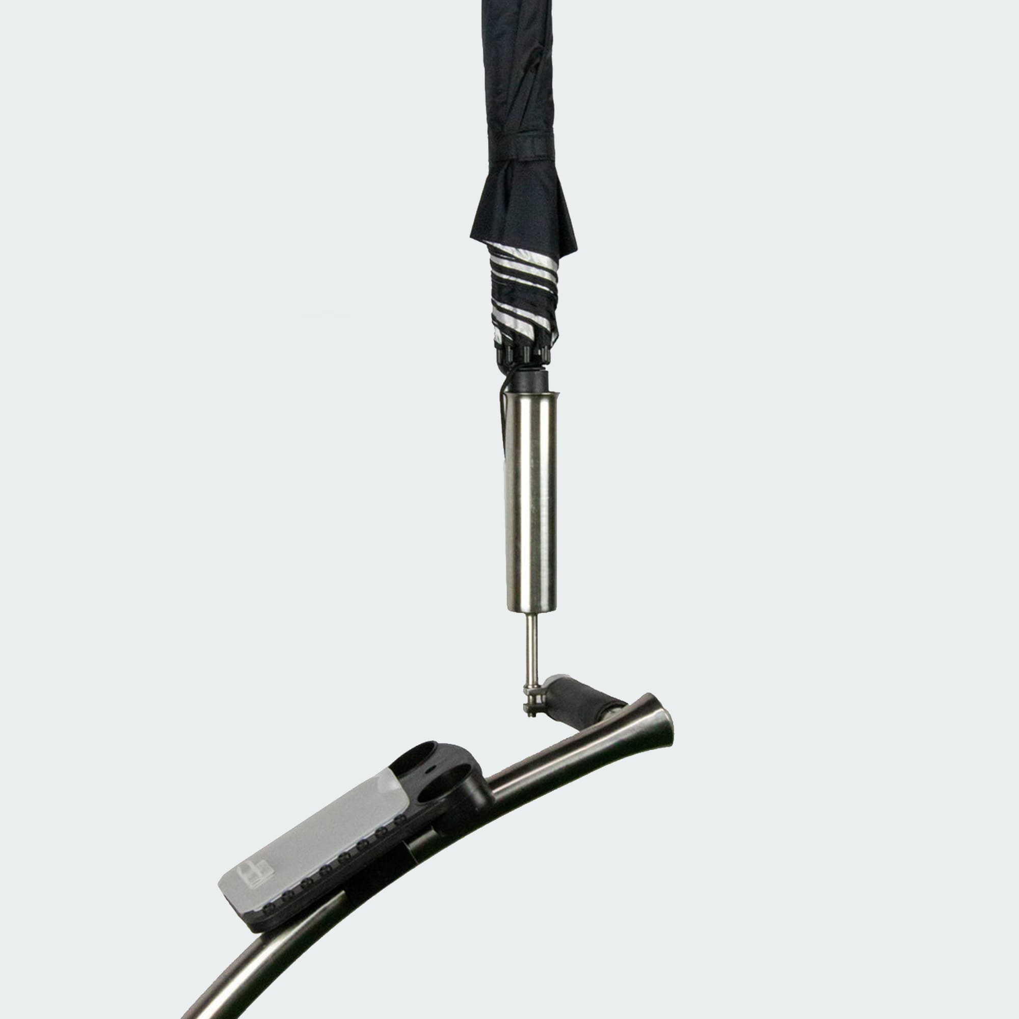 • Starker „Stainless Steel“ – Edestahl Regenschirmhalter für Golftrolleys mit  vorhandenem M8 Schraubgewinde
